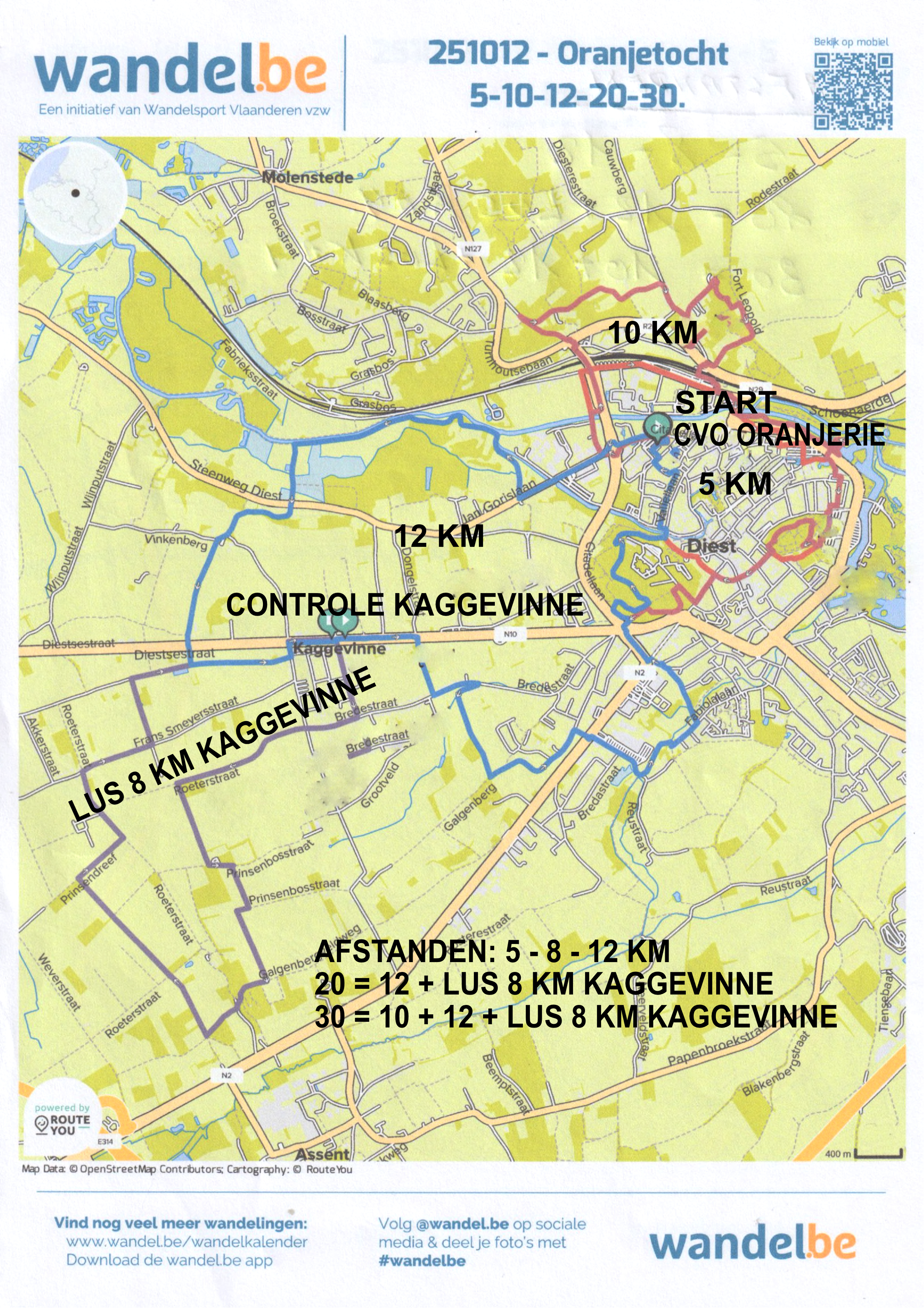Afstanden: 5 - 10 - 12 - 20 - 30 km